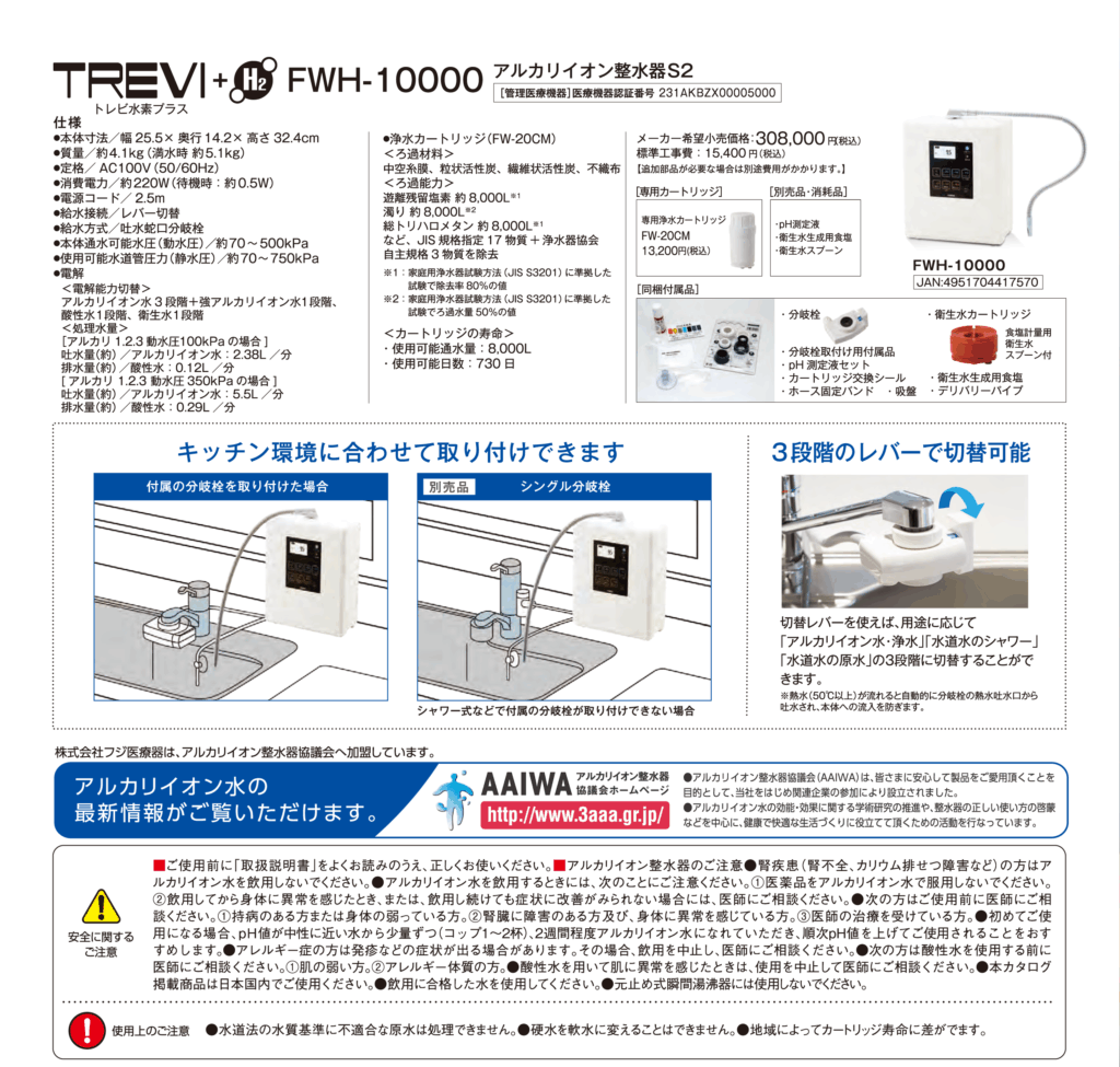 ホーム→アルカリイオン整水器/機能水生成器→FWH-10000
